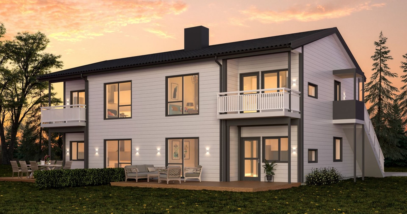 Bolig 1108 er en firemannsbolig fordelt på to etasjer. Fasaden har et klassisk uttrykk, med moderne detaljer. En kompakt bolig med det man trenger.